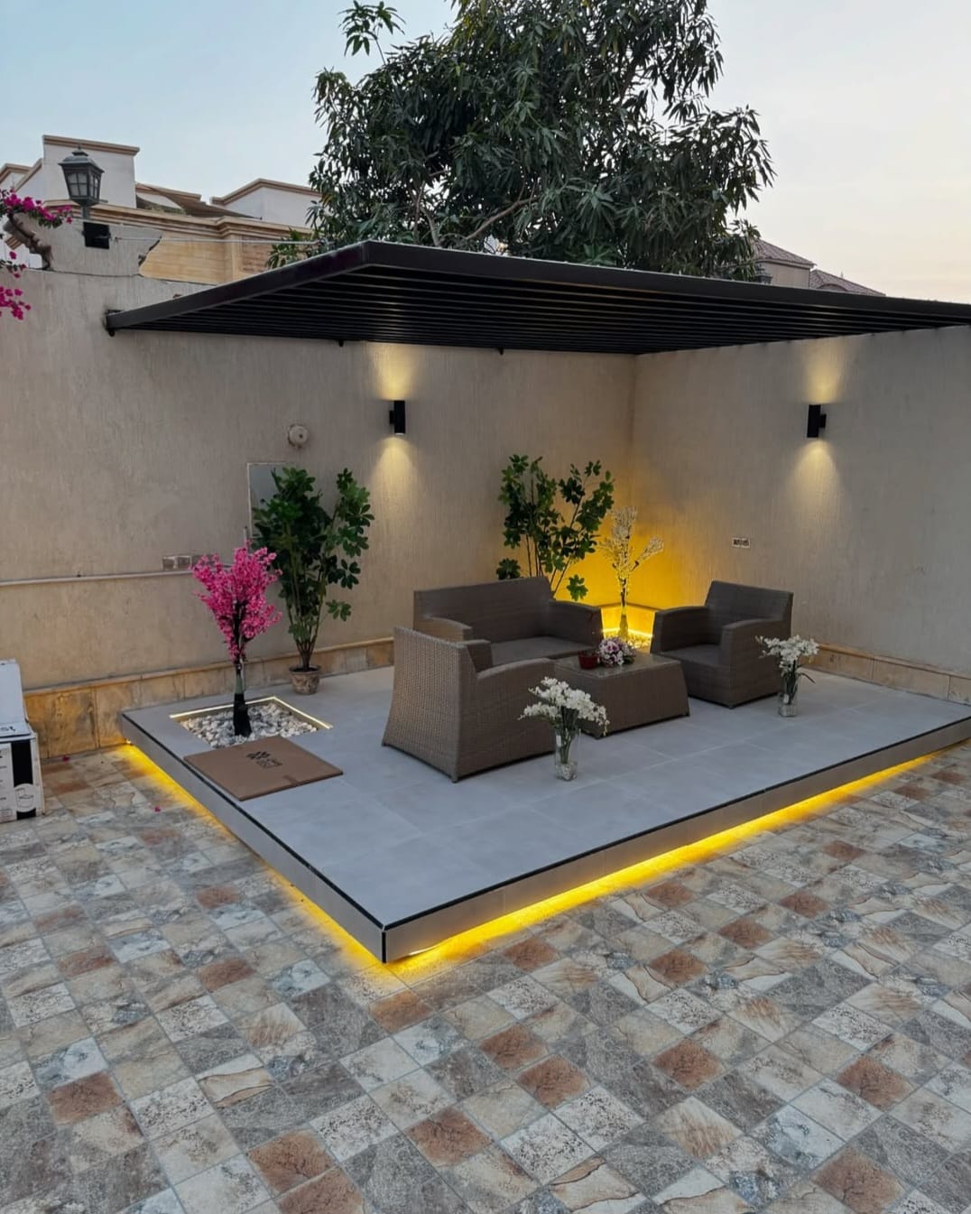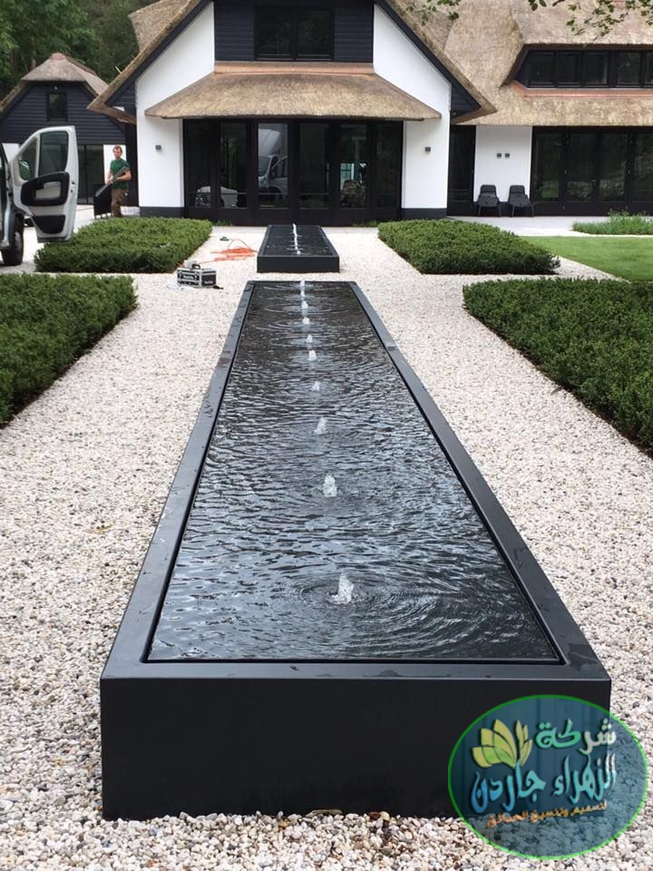 تصميم النوافير امر غير مألوف ولكن ليس بعد أن ترى هذا التصميم، وكأنها جوهرة في منتصف الفناء تتدفق. المياه منها بسلاسة ونعومة غاية في البساطة والأناقة صوت المياه المنصب منها